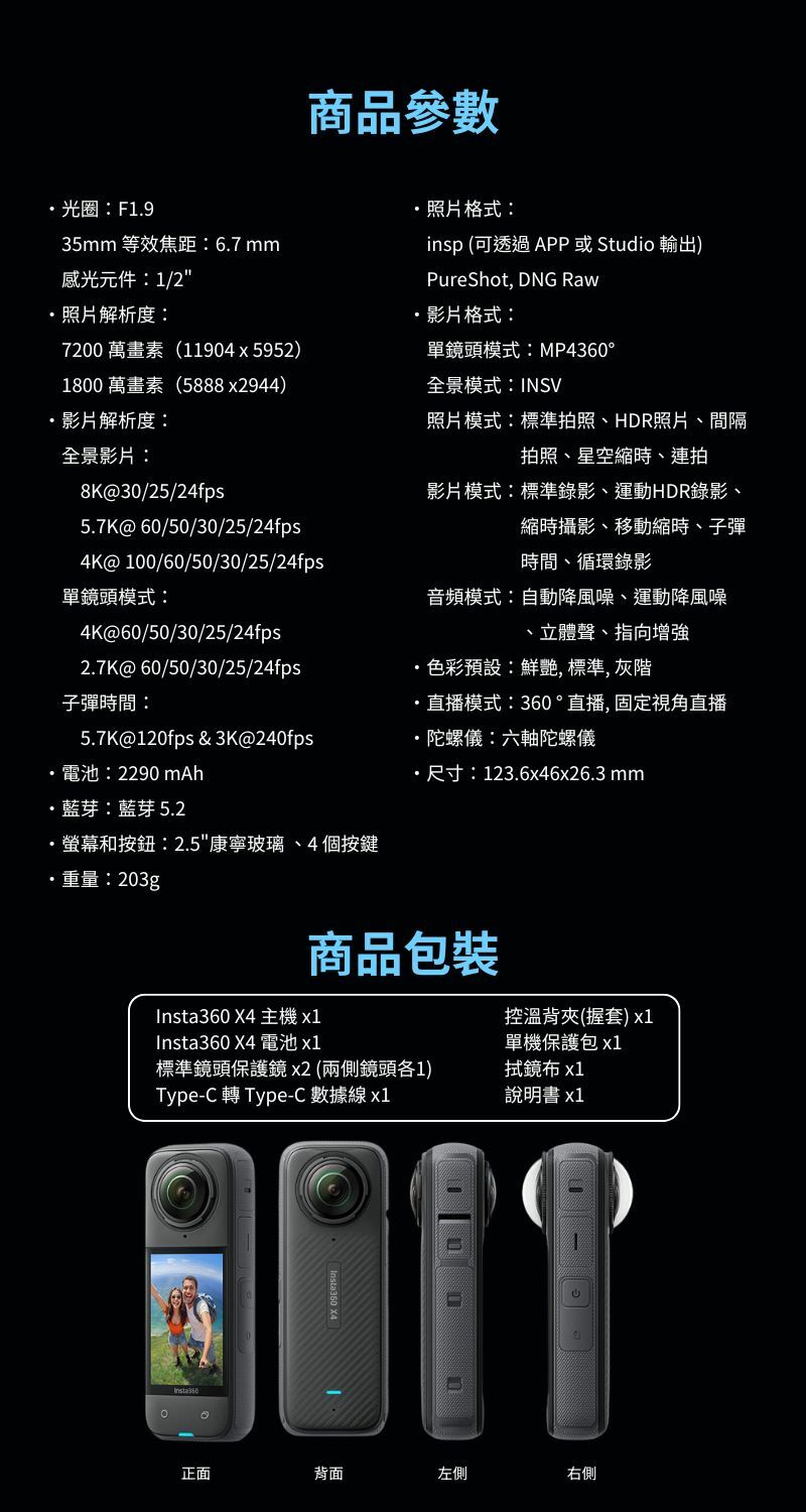 *相較於前代產品的全景影片會產生數個檔案,X4 的全景影片現在只會產生一個 .insv 檔案,讓檔案管理和桌面端編輯更加方便。