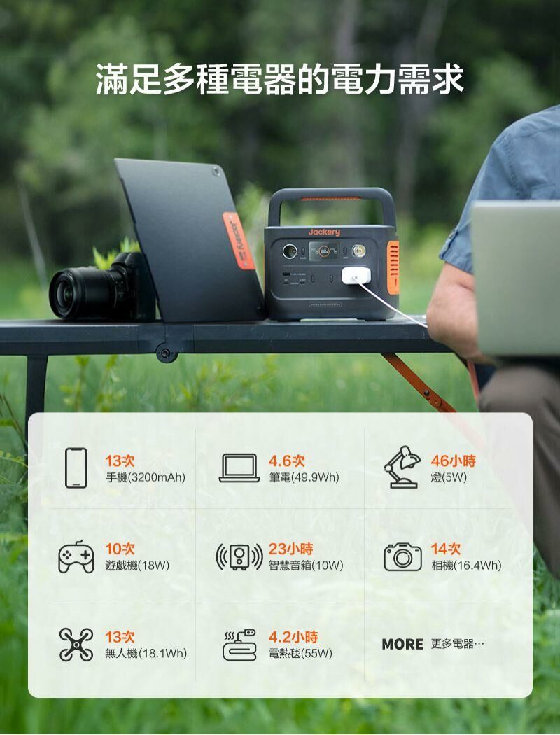 適用戶外探索、短期露營、溪湖野釣、遠端工作、空拍攝影、應急電源…等多種供電場景。
