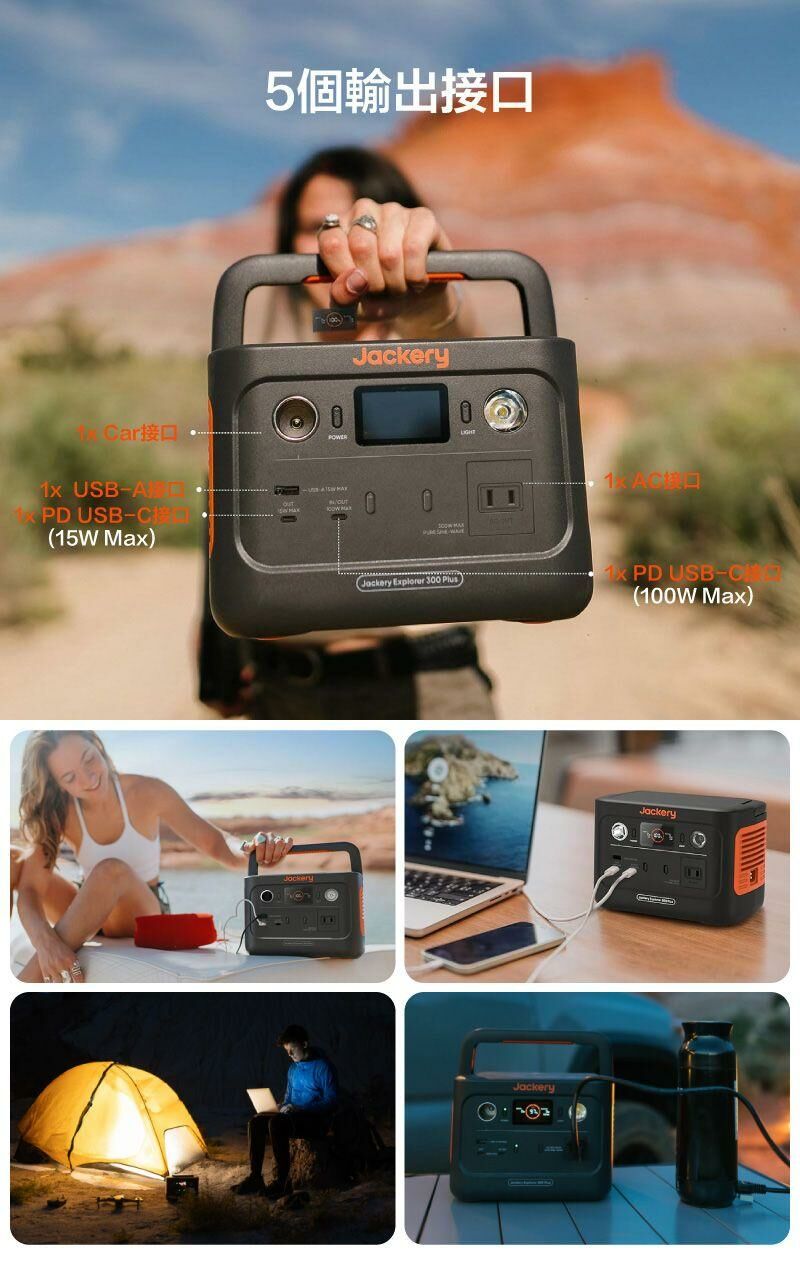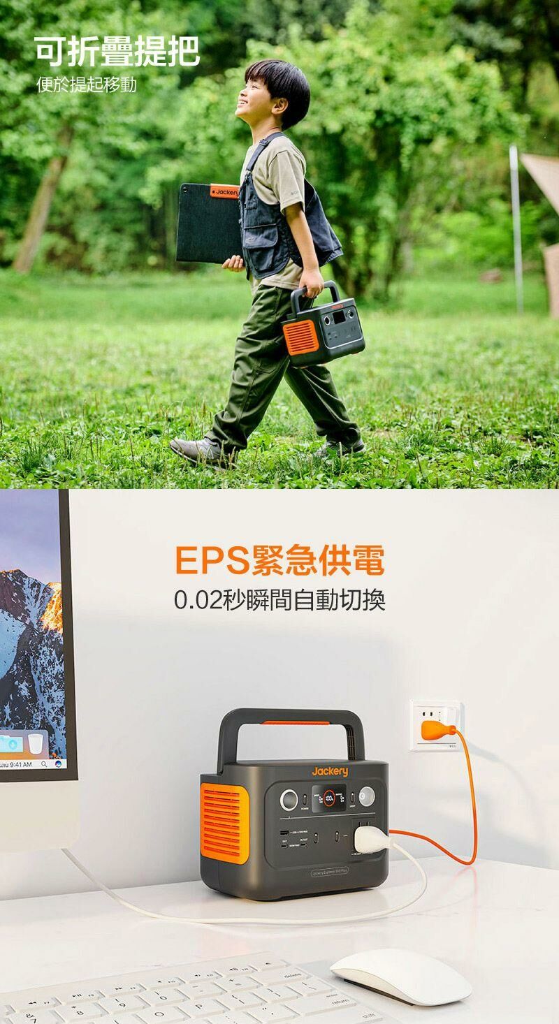 Jackery 300 Plus 儲能行動電源 (Jackery Explorer 300 Plus) 提供 288Wh 容量及 300W 額定輸出功率,小體積、大電量!為戶外探索、短期露營、遠端工作、市集擺攤、應急電源…等多種使用場景提供靈活支援。