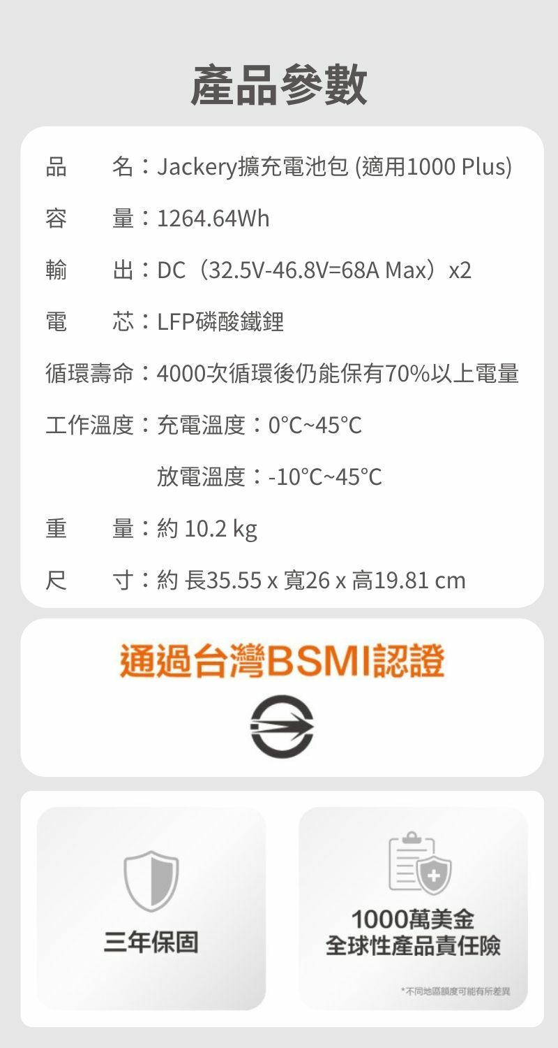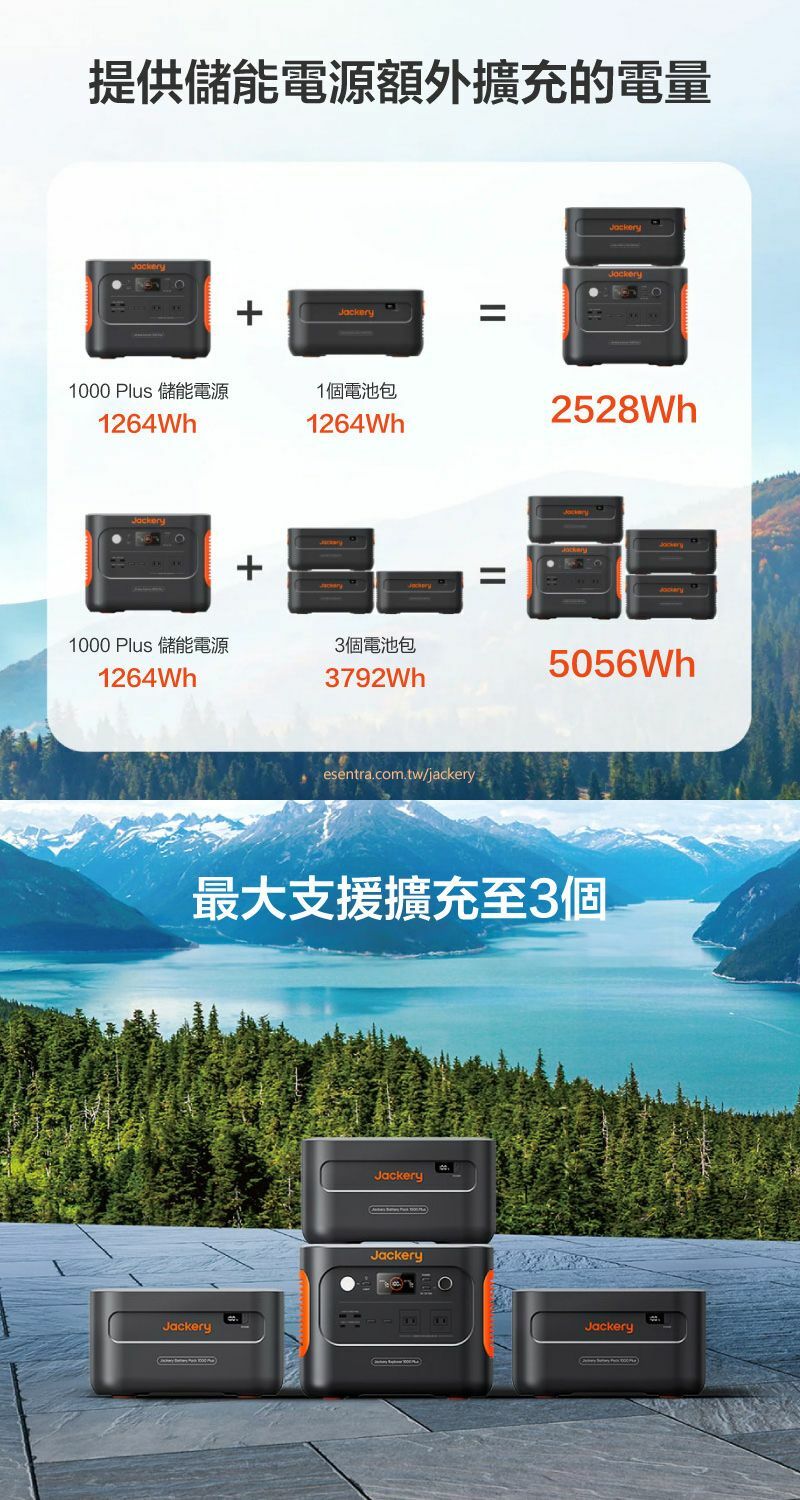 🔸提供Jackery 1000 Plus儲能電源額外擴充的電量
