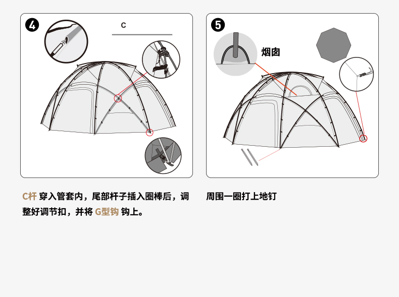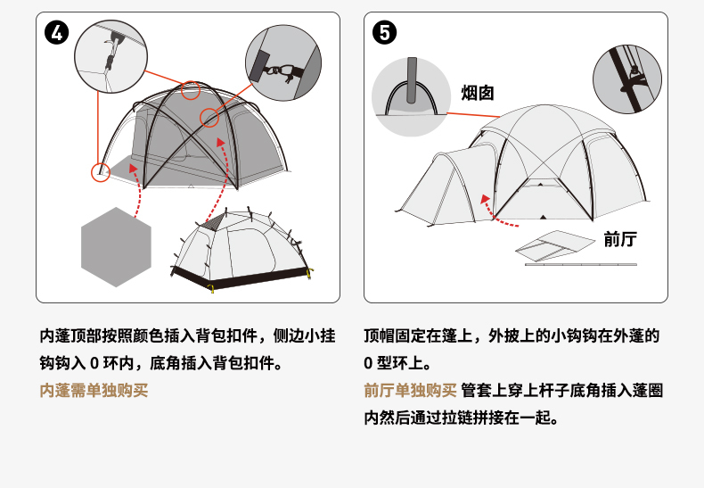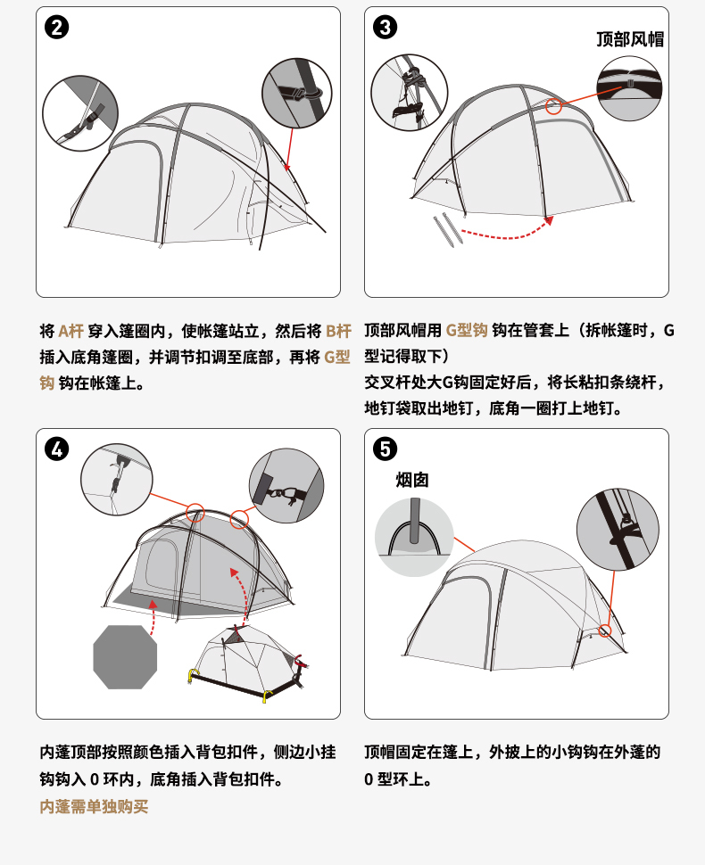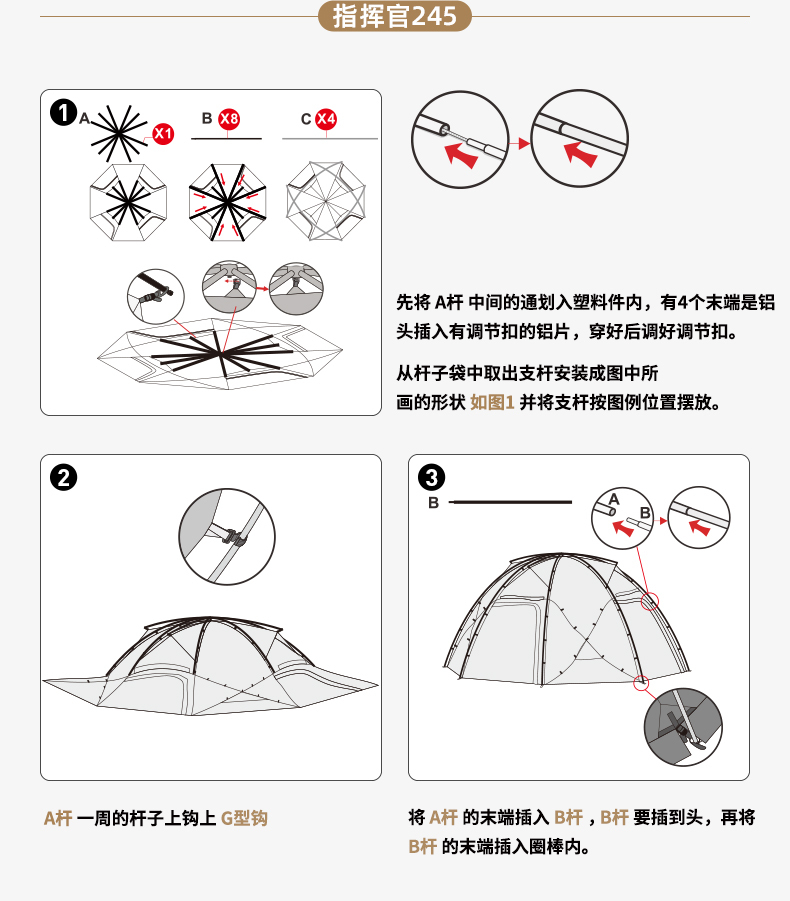 🔸採用相同長度的帳桿,降低搭建難度防搭錯